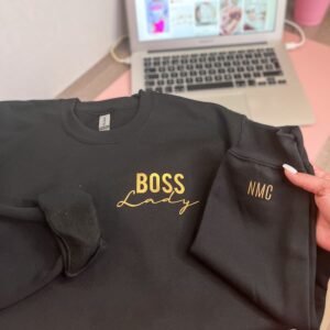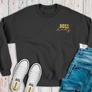Diseño frontal “Boss Lady” con letras en vinil textil color dorado